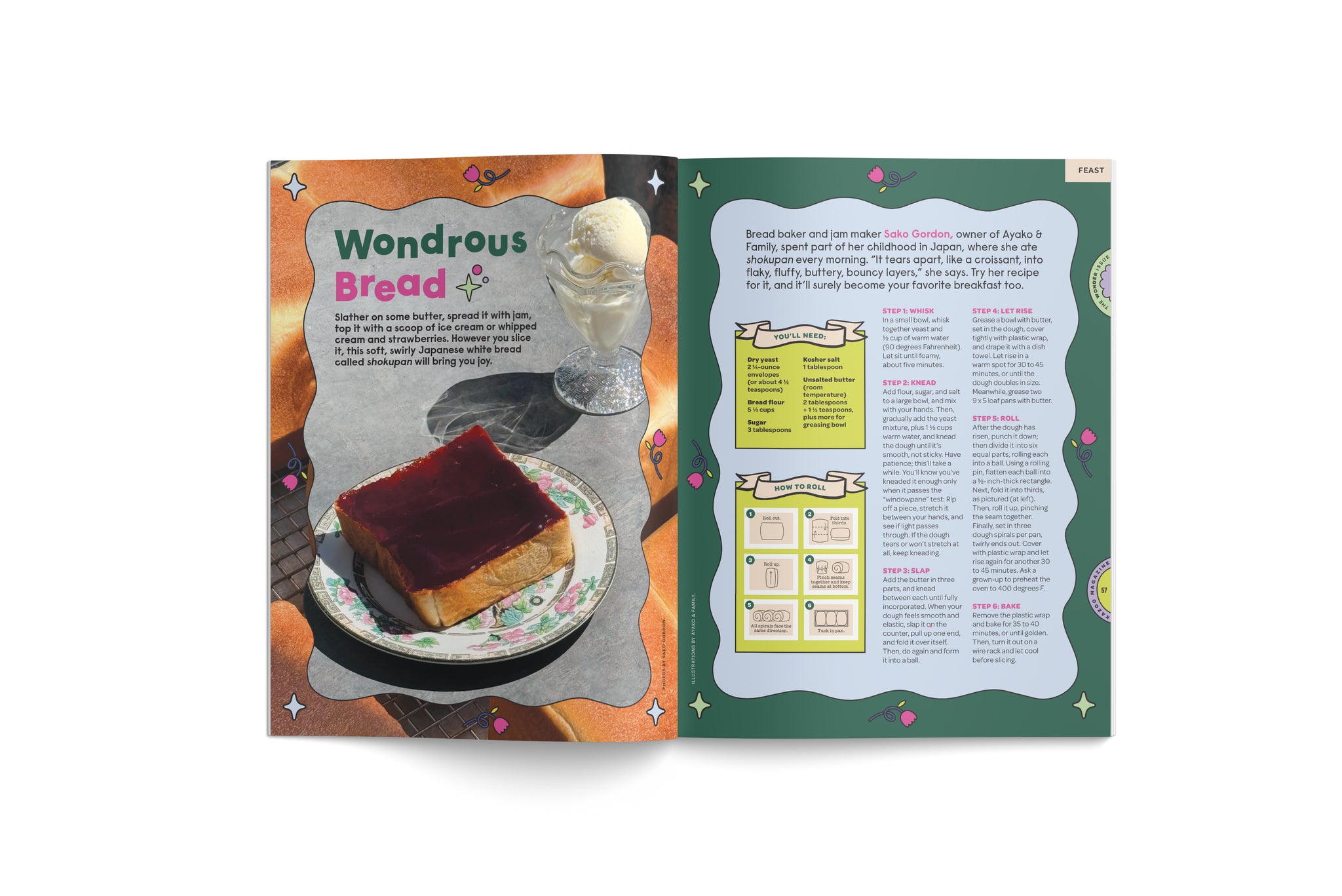 manda Jones from The Librarians; solve a maze and learn how to create your own wonder with legendary ballerina Misty Copeland; meet some adorable awwwwnimals and cozy up with capybaras with behavorial ecologist Beth Condgon, Ph.D.; make everyday things come alive with artist Helga Stenzel; bake your own shokupan, the Japanese white bread that's suddenly everywhere, with baker and jam maker Sako Gordon of Ayako & Family; trace your superhero roots in a comic about the origins of Wonder Woman; read a short story about a girl who opened her heart to wonder—and a new friend. Plus! A secret code, a search-and-find, a word search, drawing fun, a free tear-out poster, and more!